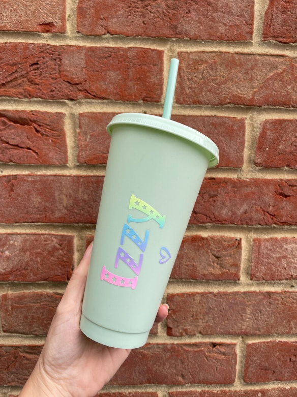 Personalised Cold Cup with Lid and Straw, Rainbow Name Cup